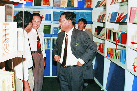 于1996年(時任化學工業部黨組副書記、副部長)視察化學工業出版社圖書展臺